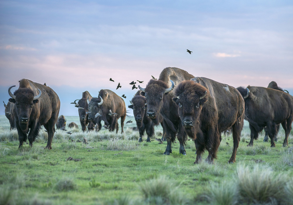 We also bring back the missing pieces of the community where we can. We have reintroduced bison, another keystone species, to our preserves. We watch with joy as they return the land to their management: creating wallows where wildflowers will spring up next year and, as they rub off their winter coats, battering juniper trees that invaded the grasslands in their absence.