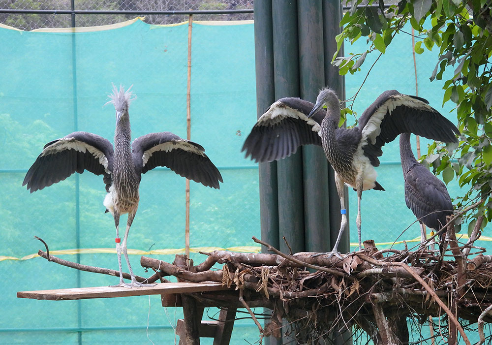 A new phase in the conservation and recovery of white-bellied heron (WBH), Ardea insignis, has begun in Bhutan with the establishment of the first pair of ex-situ breeding birds. In April 2021, researchers at the Royal Society for Protection of Nature (RSPN) collected a pair of pre-fledged juveniles from a wild nest and transferred them to the newly constructed Conservation Center in south-central Bhutan, where the birds will be raised and bred. The Center aims: to secure an ex-situ gene pool; to rear, raise, and breed herons; and to supplement the wild population by releasing them into safe habitats, where research indicates that herons should thrive. It will also serve as a center for research, a global information hub, and a place for coordinating conservation work in the region.