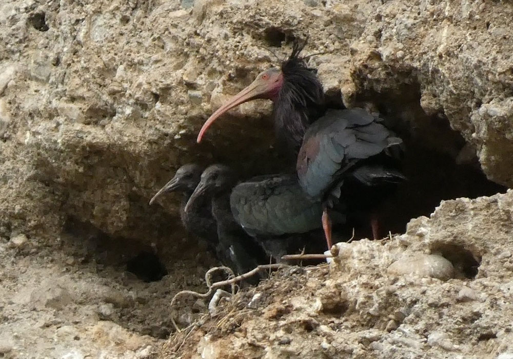 Northern Bald Ibises are whimsical birds, with their tuft of iridescent lancet feathers, their bare head with individual black patterns, and their long-curved bill. They are one of the best known and most popular birds in Europe. The species is kept in many zoos throughout Europe, where it is loved by zoo visitors due to the exotic appearance and extraordinary behaviour. But with some luck these birds can also be observed in the wild at some sites in southern Germany, Austria, Switzerland, and Italy.