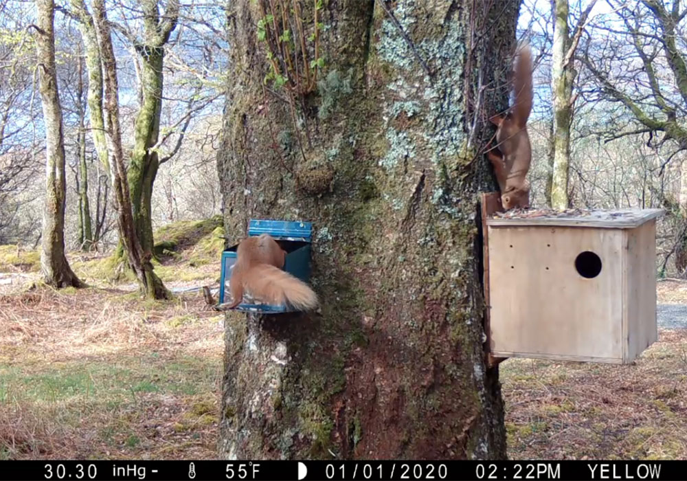 Animal welfare is also paramount during the reintroductions. The red squirrels are transported in hay-lined nest boxes that are fixed to trees at the release sites, with grass-filled exit holes allowing the squirrels to leave when ready. Food is provided for several months as the reds get used to their new habitat.
