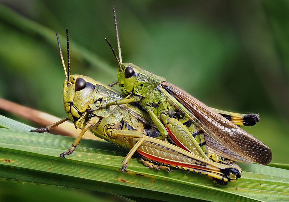 As part of the wider food web, the large marsh grasshopper provides a sizable meal for the various insect-eating birds in their new bog and wetland homes. Additionally, they have become a fairly common food source for labyrinth spiders (Agelena labyrinthica), whose funnel-like webs are often seen holding dead grasshoppers or their remains. Another of the grasshopper’s ecological roles is the breaking down of plant matter and recycling nutrients into the soil.