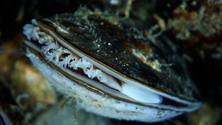 Blue mussel beds (Mytilus edulis), some the size of soccer pitches, have been reported by divers to be re-emerging along our coastline. These beds of shelled molluscs are essential for the recovery of our underwater forests: in the absence of a rocky seabed, mussels provide kelp with a hard surface to latch onto and grow. Our hope is that as these mussel beds grow, they will allow kelp to re-establish, helping the marine life associated with them to flourish.